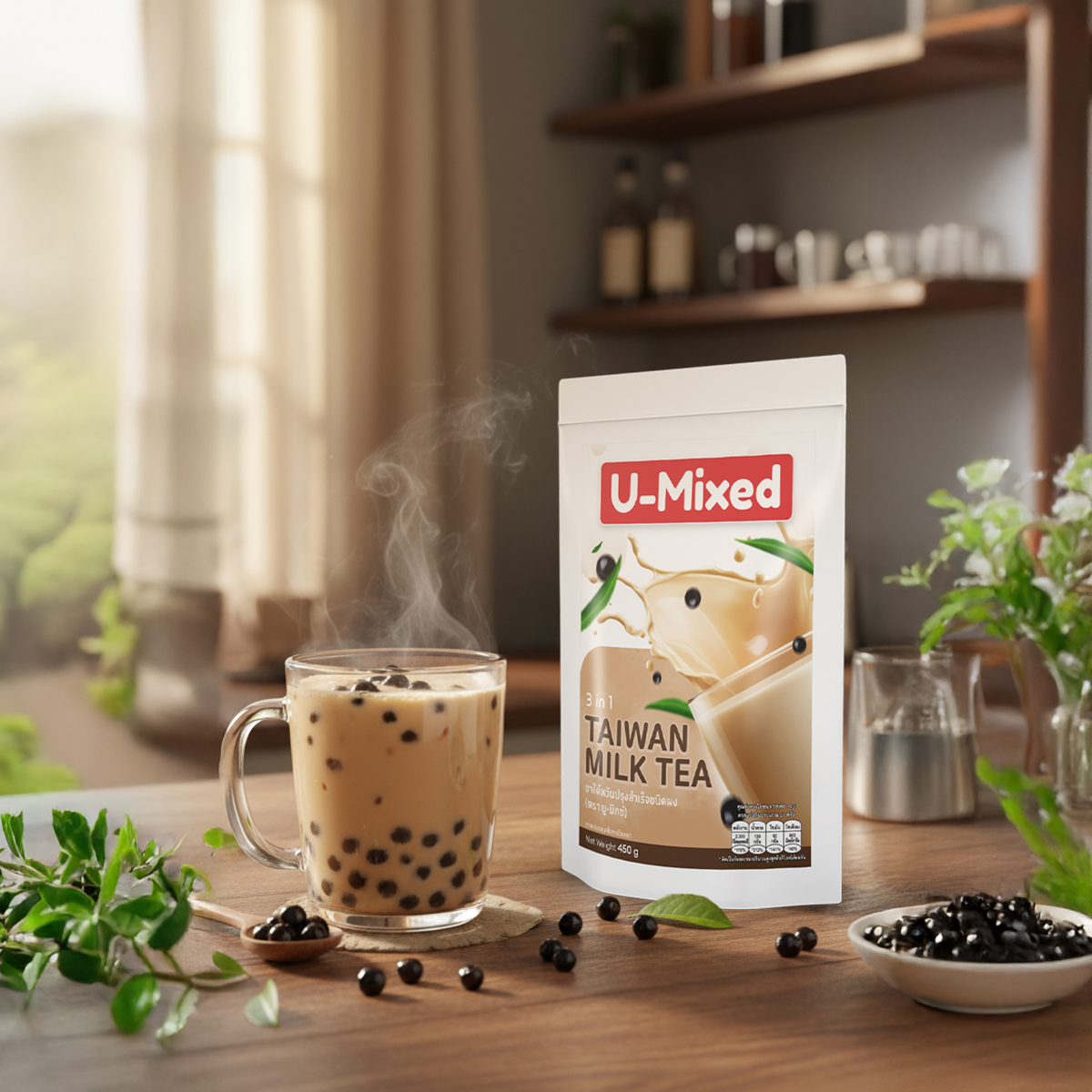 ผงชานมไต้หวันสำเร็จรูป 3in1 ยูมิกซ์ สามารถใช้ทำได้ทั้ง เมนูร้อน เมนูเย็น และเมนูปั่น ให้กลิ่นหอมของใบชาสไตล์ไต้หวันอย่างเต็ม ๆ