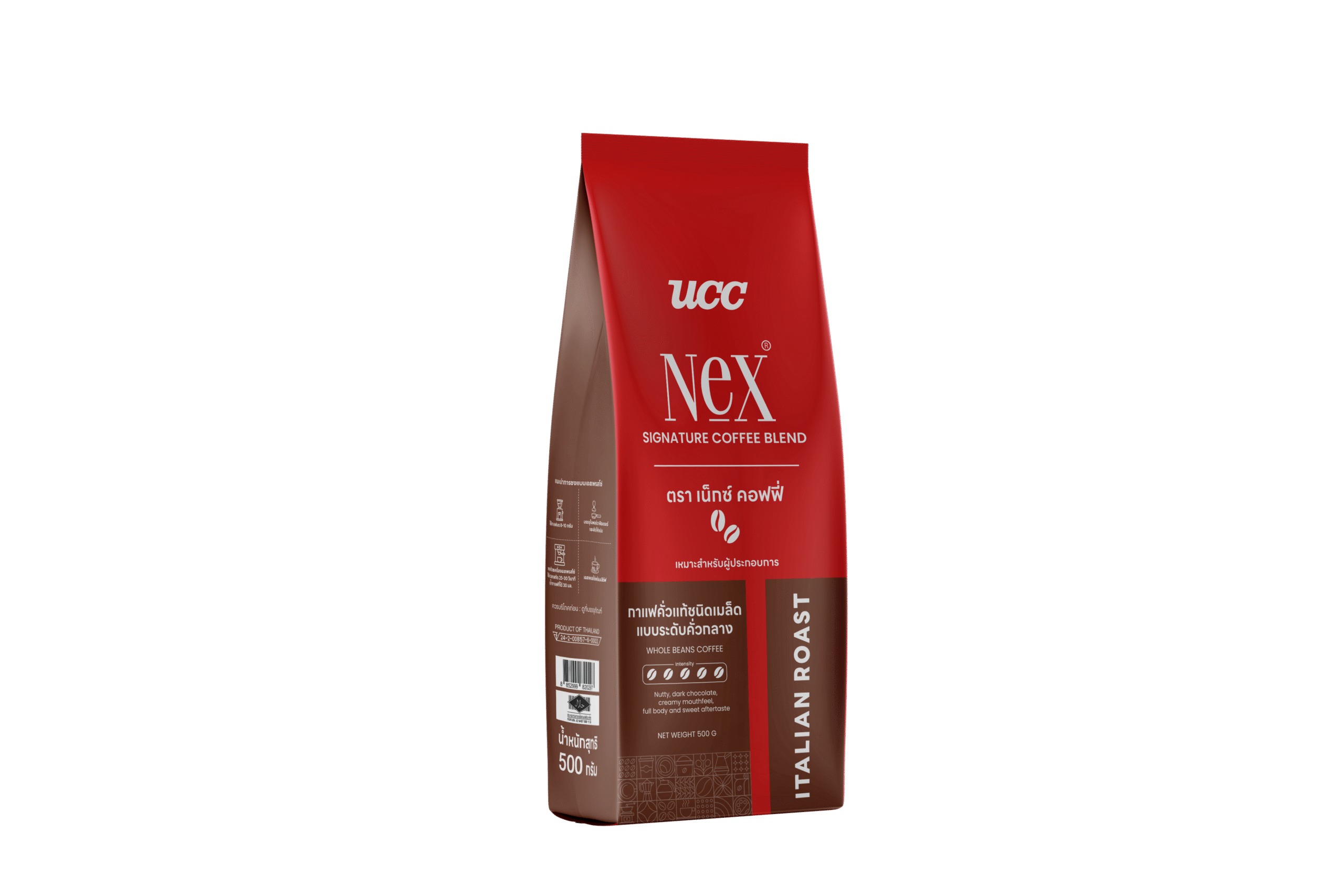 UCC Nex Blend ITALIAN ROAST เมล็ดกาแฟคั่วกลาง-เข้ม โรบัสต้า 100% รสชาติโทนถั่วและดาร์กช็อคโกแลต มีความเข้มข้นกลมกล่อมและนุ่มละมุน (Chocolate After taste) ขนาด 500 กรัม